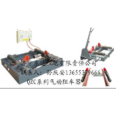 QZC系列气动阻车器阻车轮挡设计在轨道外侧,工作原理为扳道气控箱的控制阀,气缸推动阻车器轮挡打开,当矿车通用后,反向扳动气控箱控制阀,气缸推动阻车轮挡关闭,从而实现对矿车的阻挡滞停。